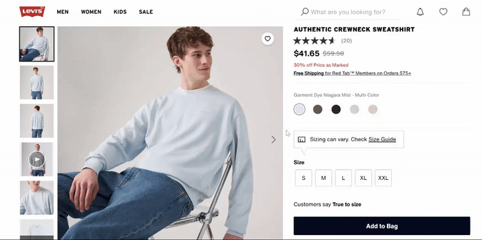 Levis 牛仔褲產(chǎn)品頁面在產(chǎn)品描述中使用長尾關(guān)鍵詞進行關(guān)鍵詞定位為搜索引擎和 AI 引擎提供更豐富的內(nèi)容每個變體都允許您添加唯一的屬性、描述和規(guī)范這會創(chuàng)建一個更詳細、內(nèi)容更豐富的產(chǎn)品頁面,搜索引擎和 人工智能驅(qū)動 引擎(如 ChatGPT 或 Google 的人工智能 概述)的價值。