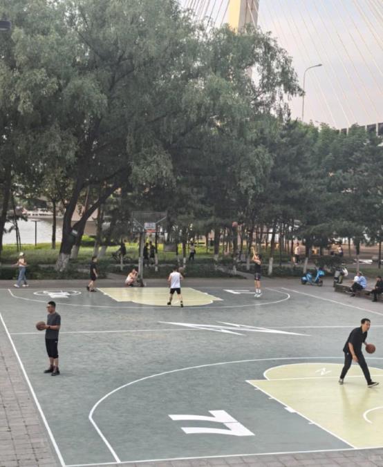 該籃球場(chǎng)的位置在沈陽(yáng)市奧林匹克生態(tài)公園。從圖片來(lái)看,球場(chǎng)上印有?張鎮(zhèn)麟的球衣號(hào)碼“77”以及姓氏字母縮寫“Z”。