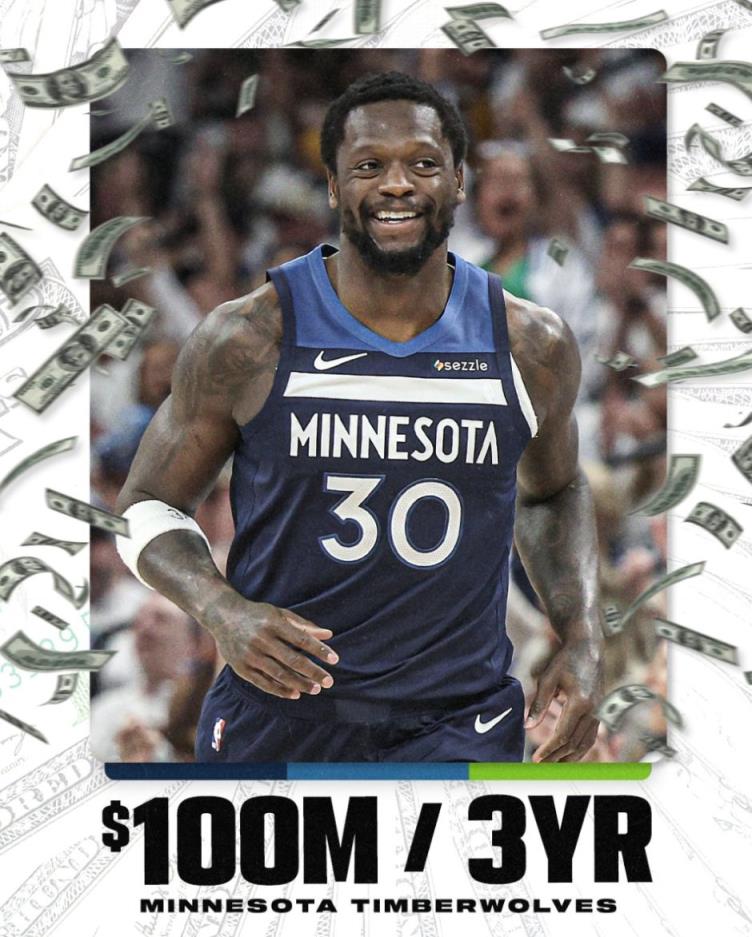 北京時間6月30日,ESPN報道,朱利葉斯-蘭德爾與明尼蘇達森林狼達成一份新的續(xù)約合同,這份合同是三年1億,換言之蘭德爾拒絕執(zhí)行他下賽季價值3090萬的球員選項后與森林狼達成新的續(xù)約協(xié)議。