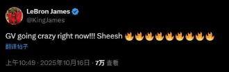 文森特的出色表現(xiàn),讓詹姆斯也是通過社媒點(diǎn)贊表示:“GV(文森特)要瘋了!嘶~火火火火火火火火火。