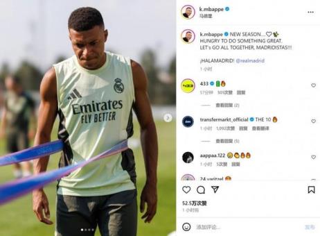 8月5日,姆巴佩在社交媒體上更新了動(dòng)態(tài),分享了他參加季前訓(xùn)練的照片。姆巴佩在社交媒體上發(fā)布了一張訓(xùn)練照片,配文寫(xiě)道:“新賽季…期待創(chuàng)造輝煌,讓我們共同努力,皇馬人!HALA MADRID!”